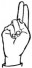 На ћирилици написано УНА ОЛУЈИЋ састоји се из 9 слова [?]. Исписано ћириличном једноручном азбуком за глувонеме: